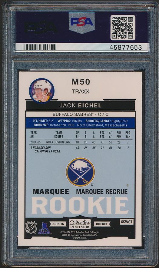 Jack Eichel 2015-16 O-Pee-Chee Platinum Marquee Rookies Traxx #M50 RC (PSA 9)