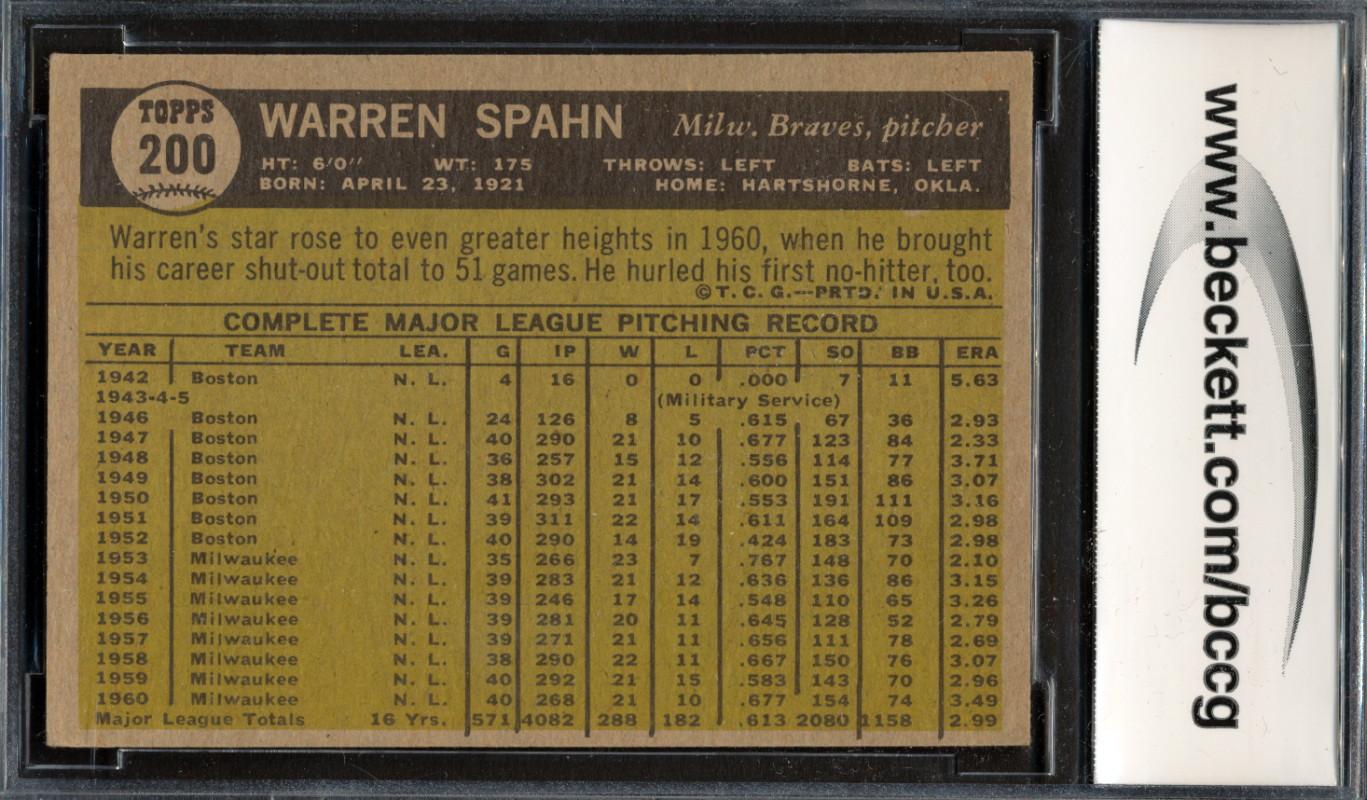 Warren Spahn 1961 Topps #200 (BCCG 8)