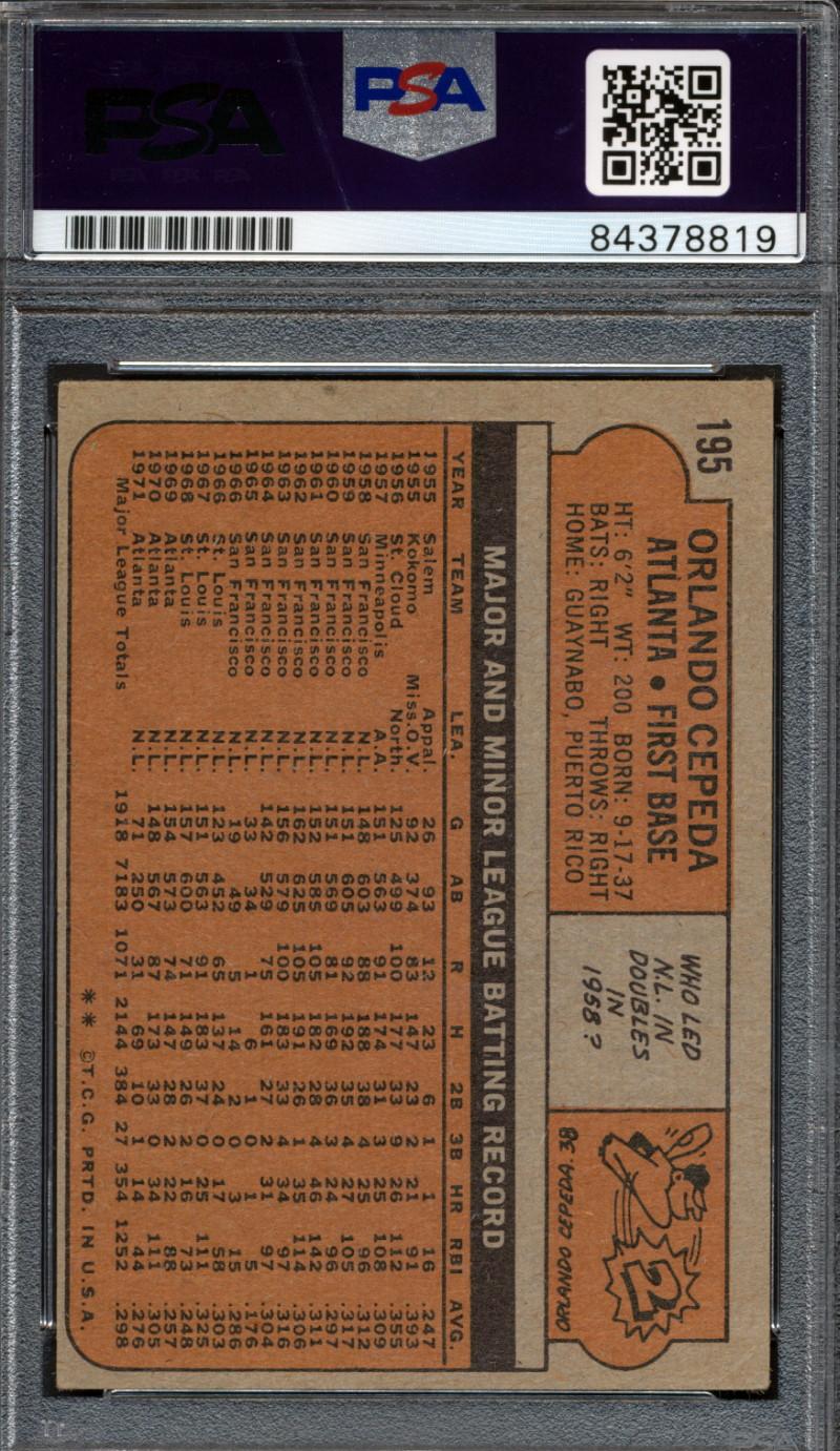 Orlando Cepeda Signed 1972 Topps #195 (PSA)