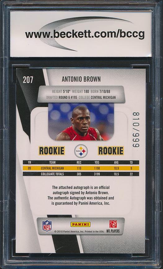 Antonio Brown 2010 Prestige Draft Picks Rights Autographs #207 #/999 (BCCG 10)