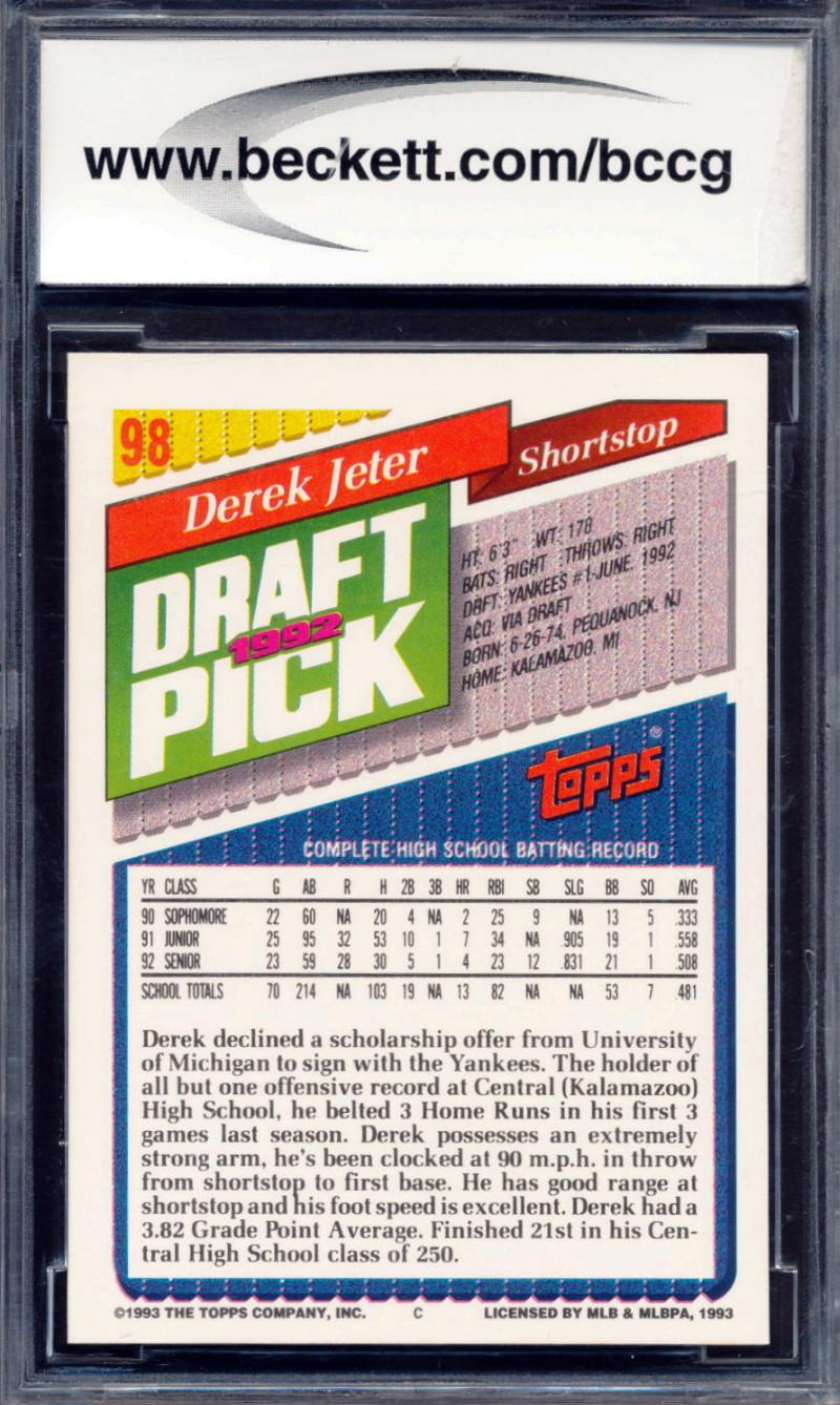 Derek Jeter 1993 Topps #98 RC (BCCG 9)