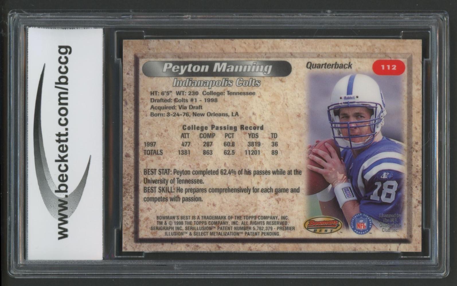 Peyton Manning 1998 Bowman's Best #112 RC (BCCG 10)