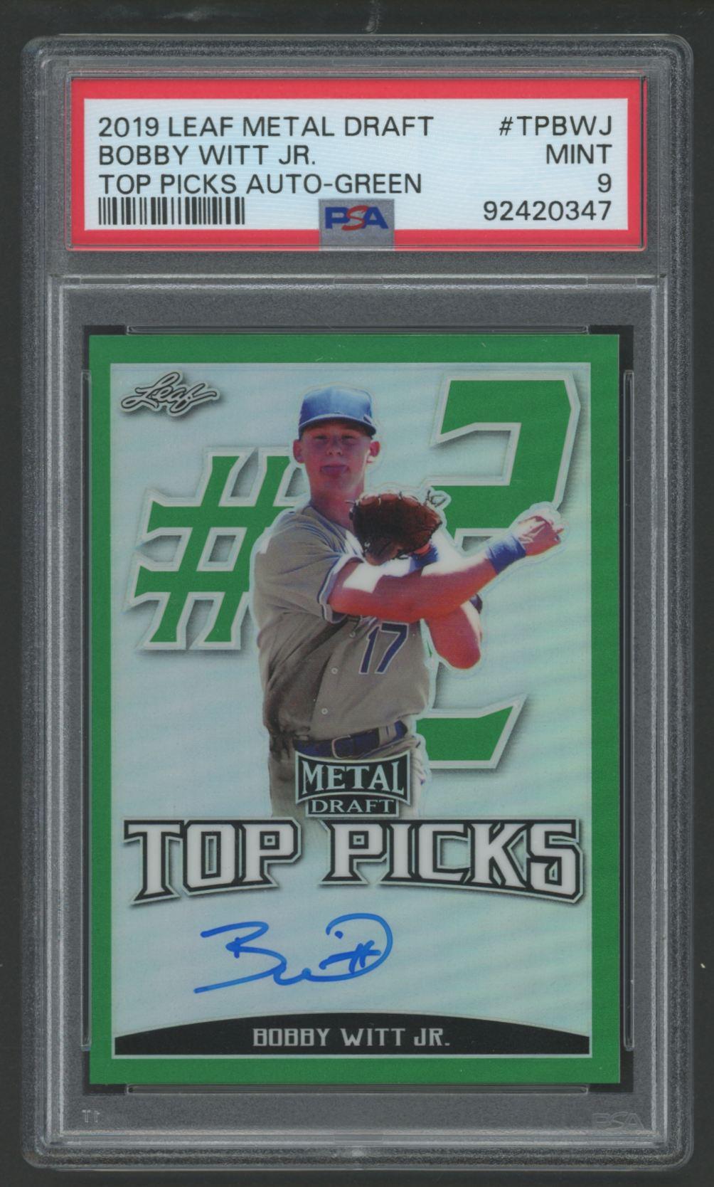 Bobby Witt Jr. 2019 Leaf Metal Draft Top Picks Autographs Green #TPBWJ #3/10 (PSA 9)