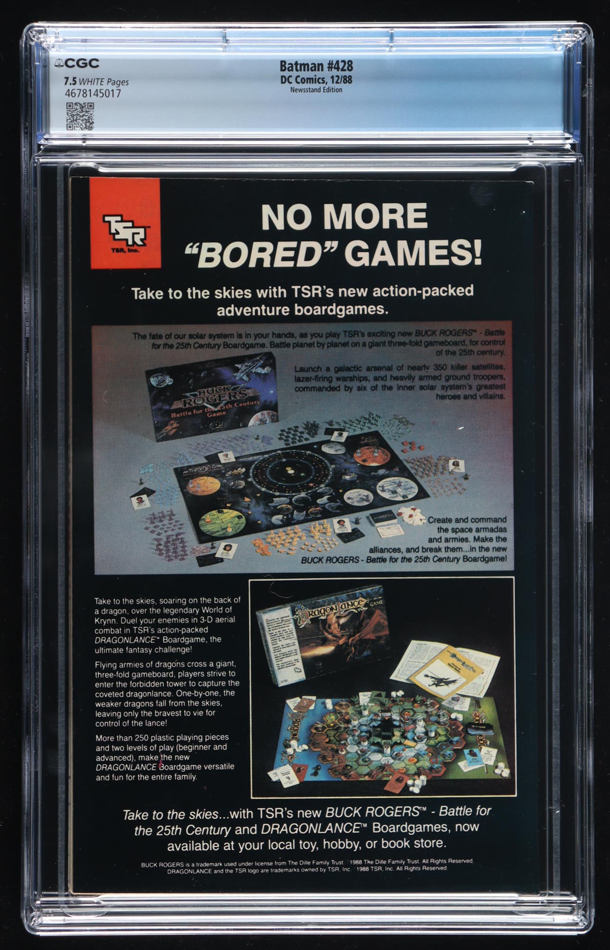 December 1988 "Batman" #428 DC Comic Book has been graded CGC (7.5). Please see photos for details regarding the condition of the comic.