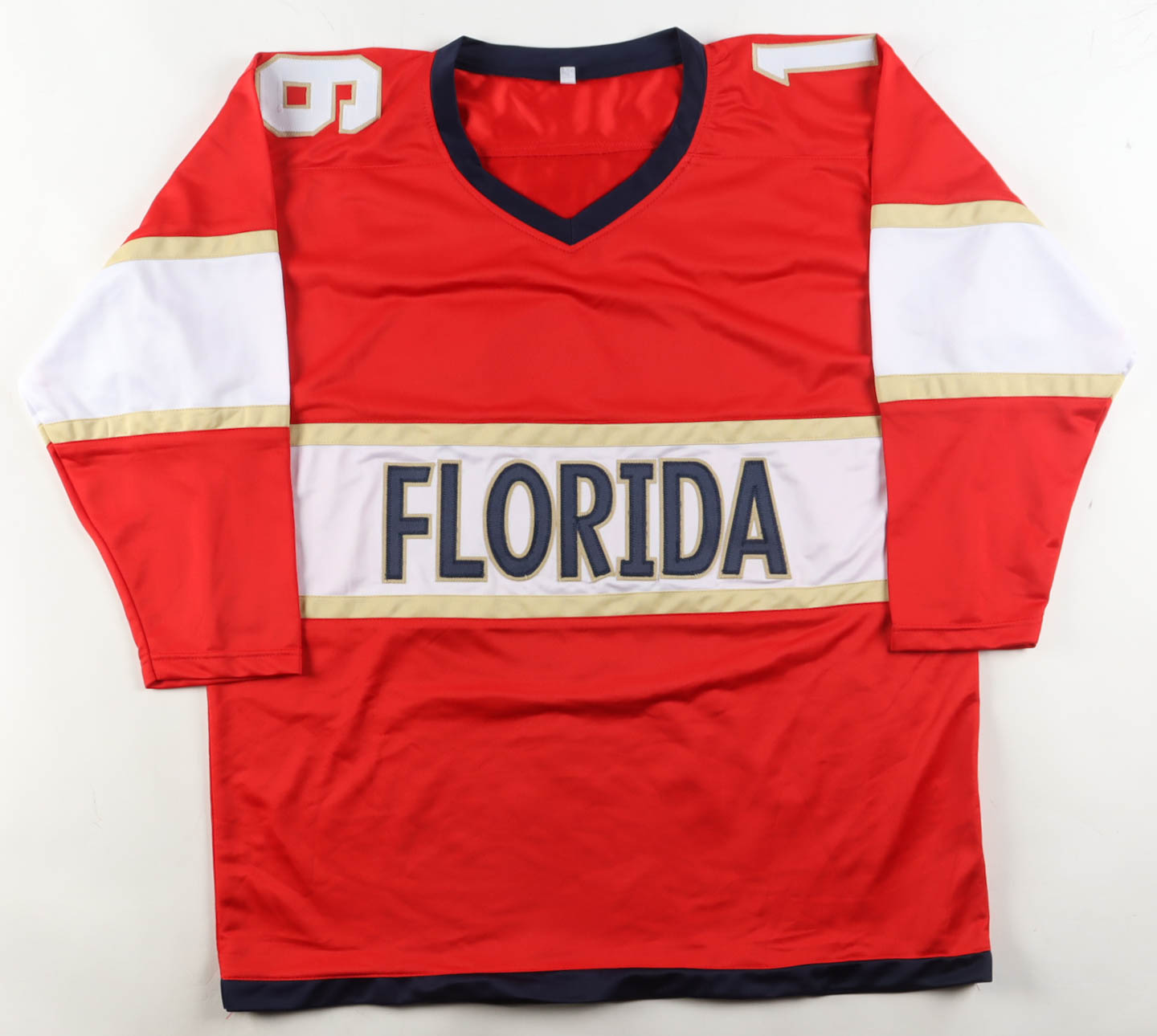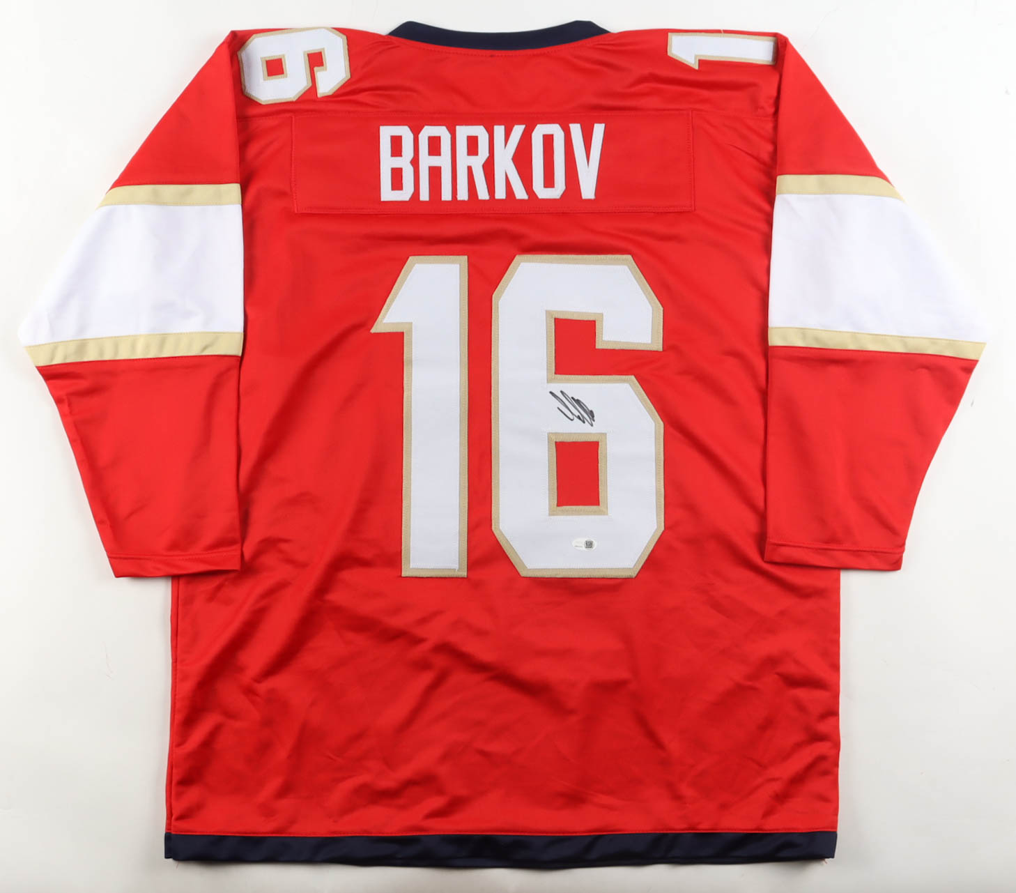 Custom jersey with everything sewn on, size XL. Hand-signed by Aleksander Barkov (Florida Panthers).