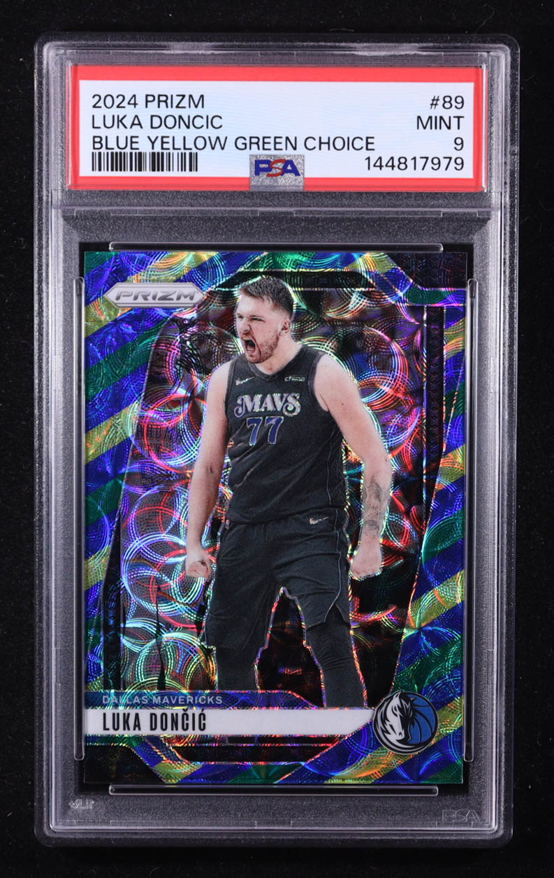 Luka Doncic 2024-25 Panini Prizm Prizms Choice Blue Yellow and Green #89 (PSA 9)