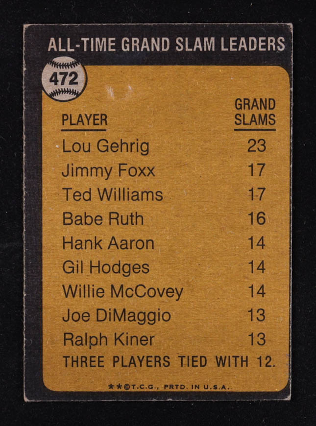 Lou Gehrig 1973 Topps #472 All-Time Grand Slam Leader