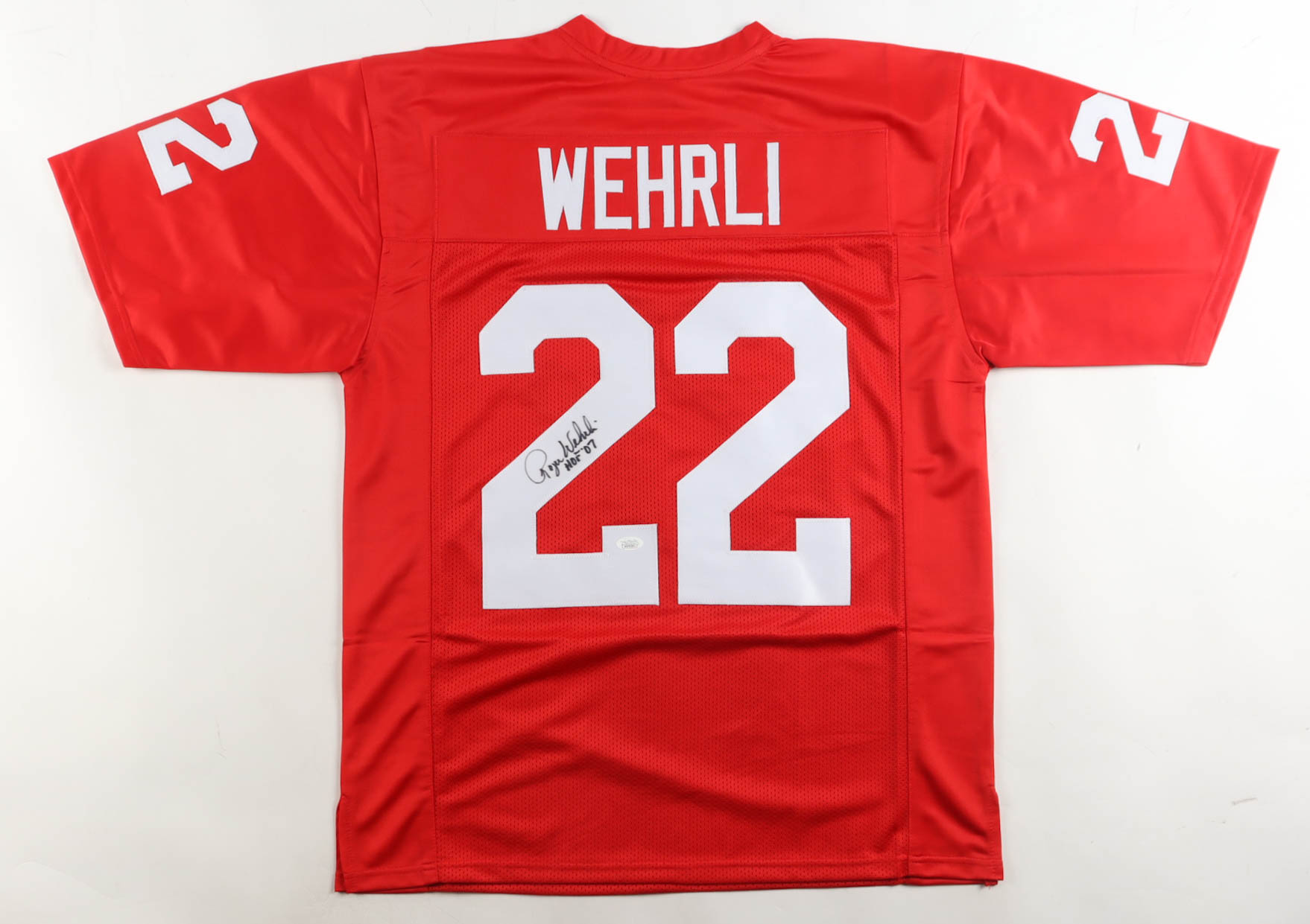 Custom jersey with everything sewn on, size XL. Hand-signed and inscribed by Roger Wehrli (St. Louis Cardinals, HOF).