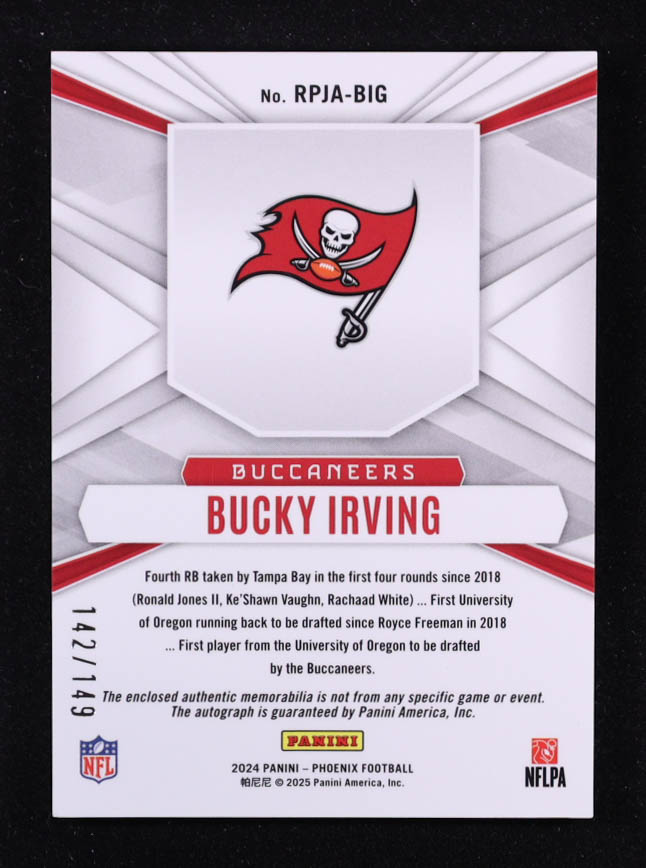 Bucky Irving 2024 Panini Phoenix Rookie Phenoms Jersey Autographs Silver #22 #142/149 RC