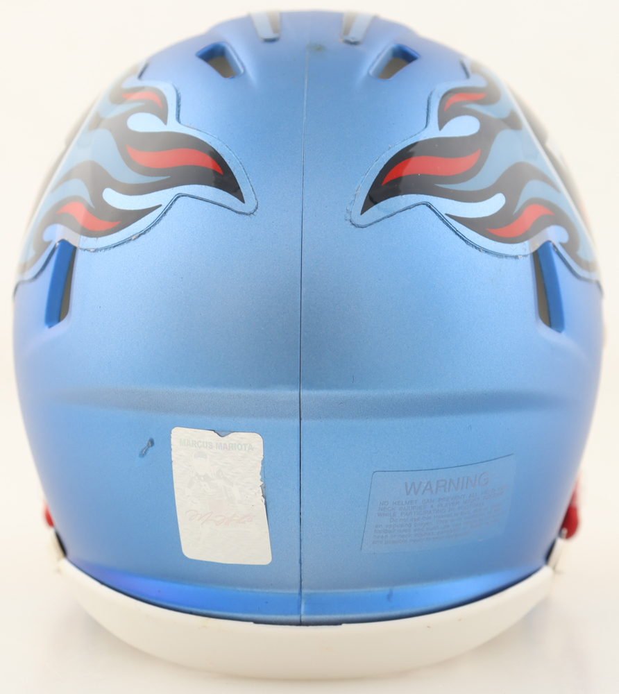 Riddell Tennessee Titans Blaze Alternate speed mini helmet has been hand-signed by Marcus Mariota.