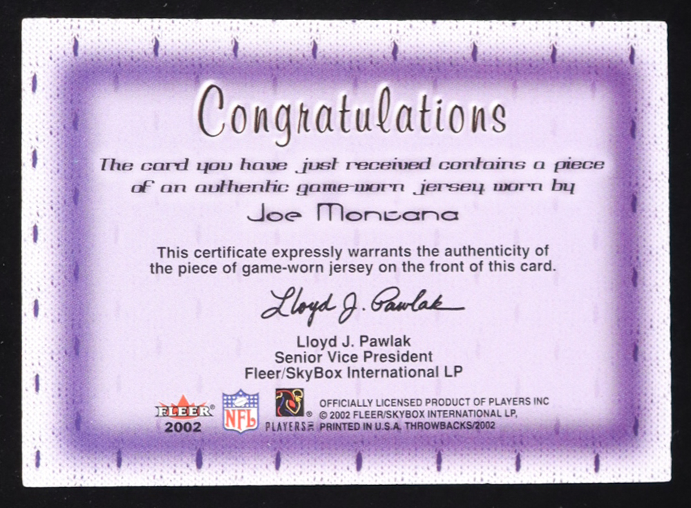 Joe Montana 2002 Fleer Throwbacks Classic Clippings #8 DP