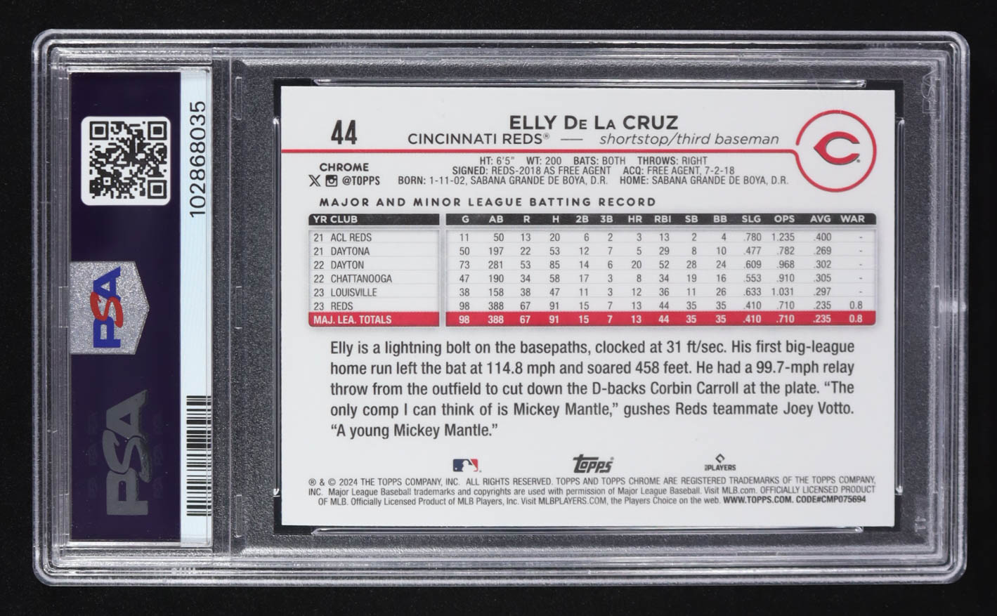 Elly De La Cruz 2024 Topps Chrome X-fractors #44 RC (PSA 10)