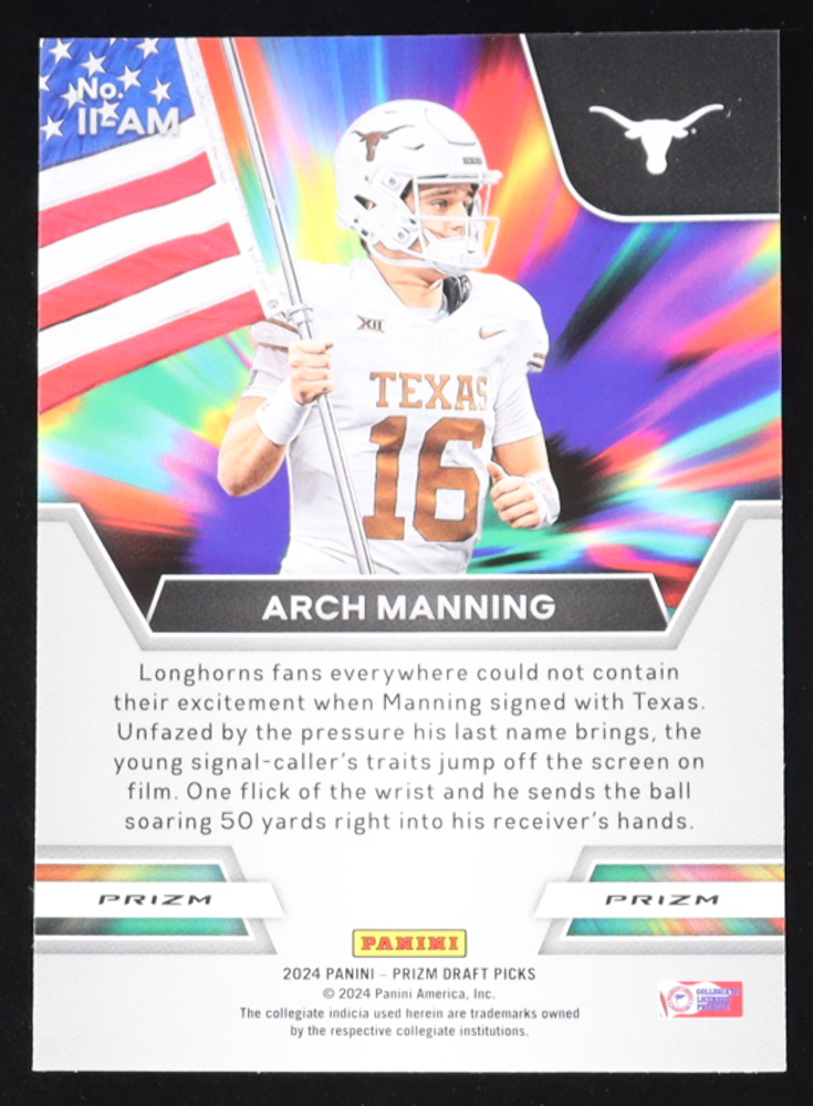 Arch Manning 2024 Panini Prizm Draft Picks Instant Impact Green #23 RC