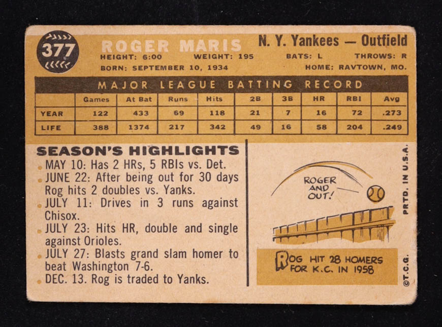 Please see photos for more details regarding the condition of the card (New York Yankees).