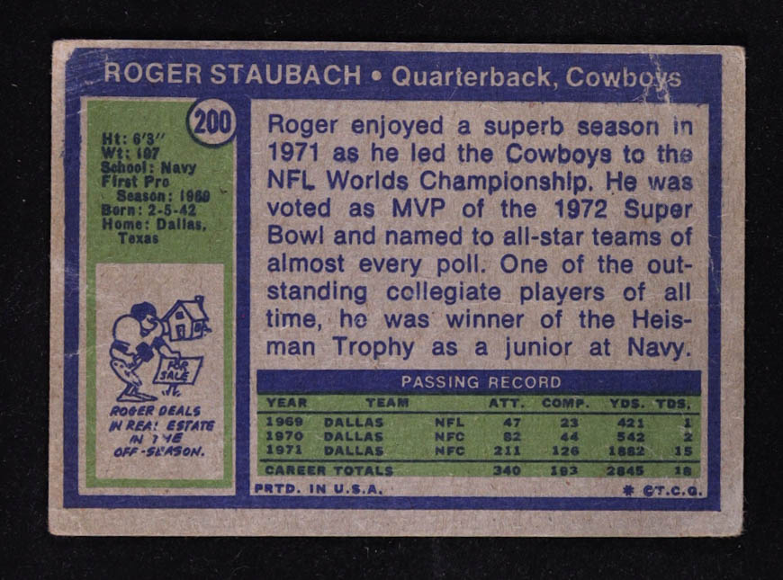 Roger Staubach 1972 Topps #200 RC