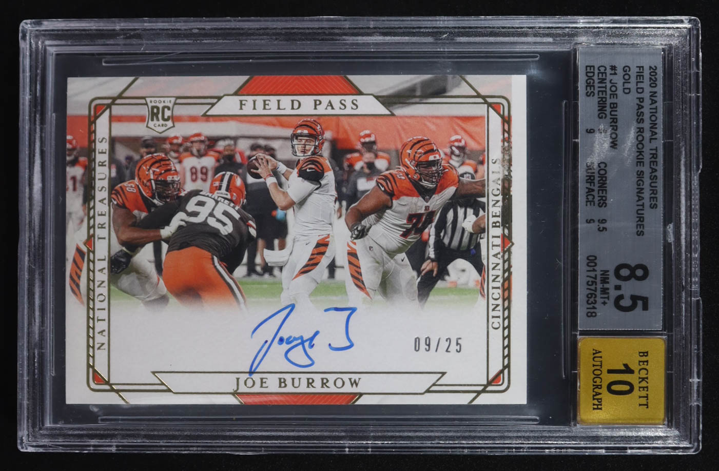 Joe Burrow 2020 Panini National Treasures Field Pass Rookie Signatures Gold #FP-JB RC #09/25 (BGS 8.5 | Autograph Graded BGS 10)