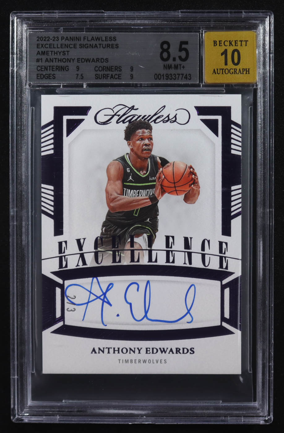 Anthony Edwards 2022-23 Panini Flawless Excellence Signatures Amethyst #ES-ANT #2/3 (BGS 8.5 | Autograph Graded BGS 10)