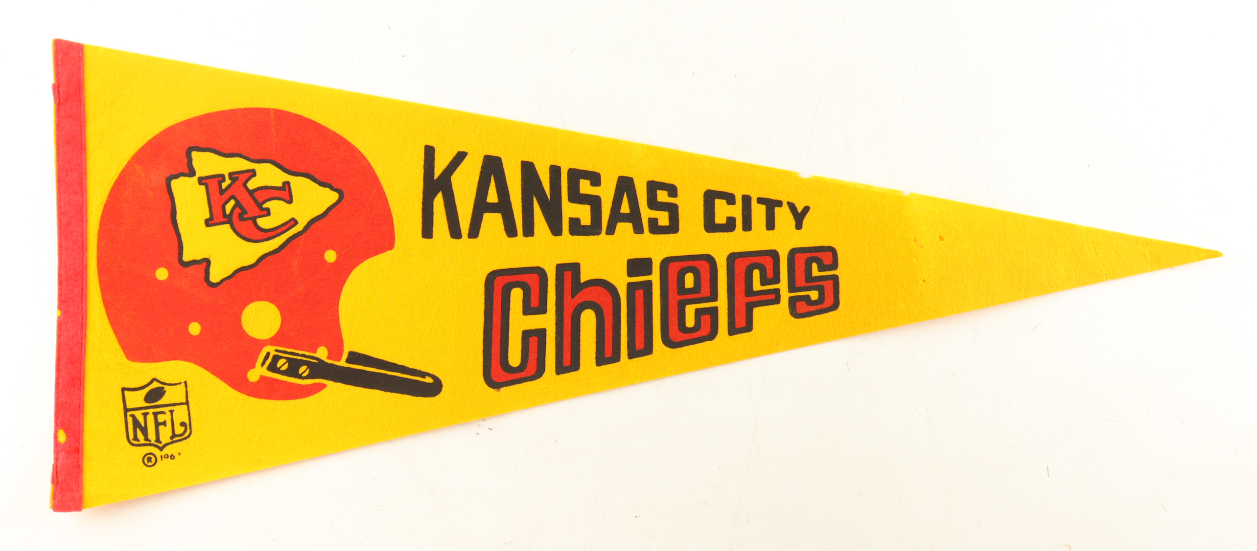 1969 Kansas City Chiefs pennant flag measures 29" long. Please see photo for more details regarding the condition of the flag. Please note, the item is unsigned.