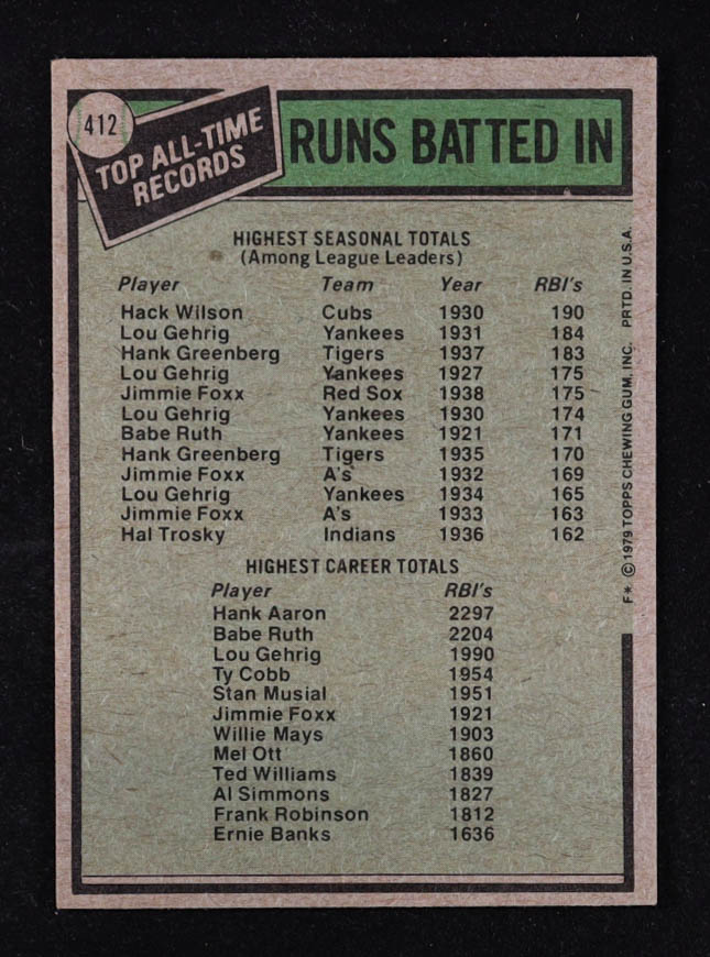 Hack Wilson / Hank Aaron 1979 Topps #412 ATL