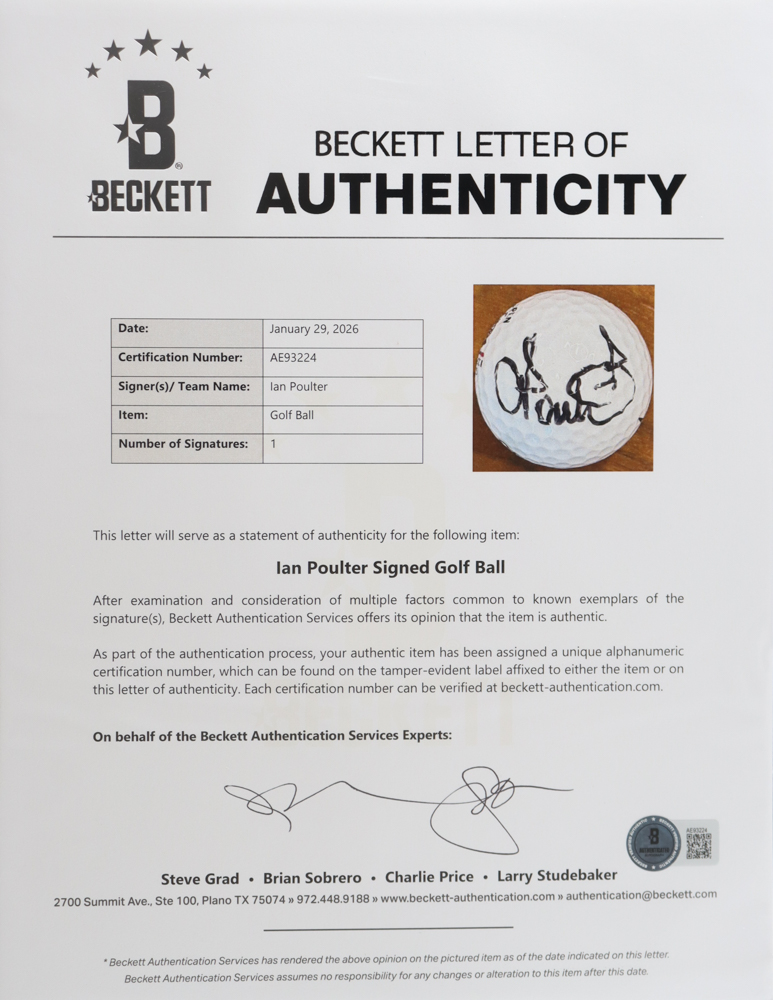 Titleist golf ball. Hand-signed by Ian Poulter.
