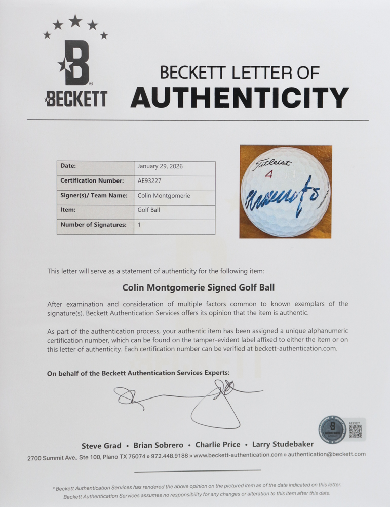 Colin Montgomerie Signed Golf Ball (Beckett)