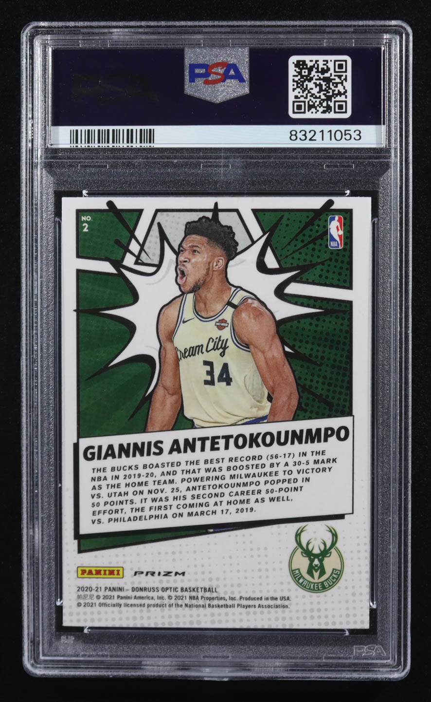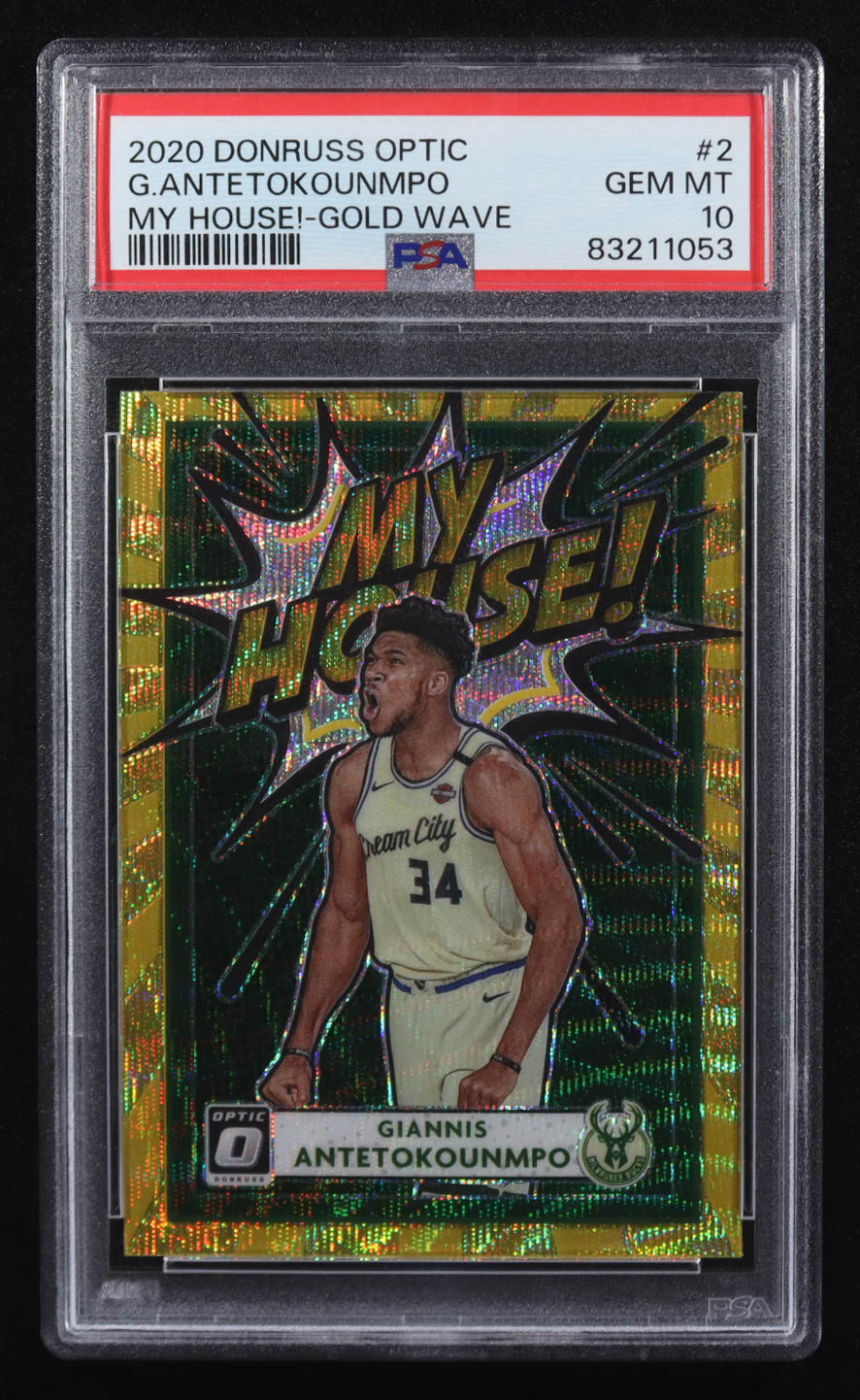 Giannis Antetokounmpo 2020-21 Panini Donruss Optic My House! Gold Wave #2 (PSA 10)