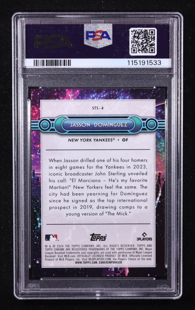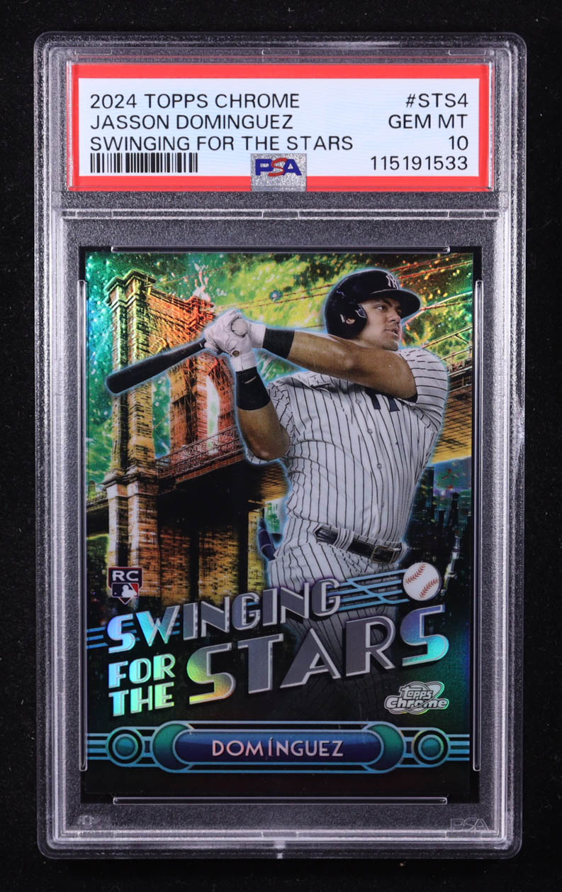 Jasson Dominguez 2024 Topps Chrome Fanatics Fest Swing for the Stars #STS4 RC (PSA 10)