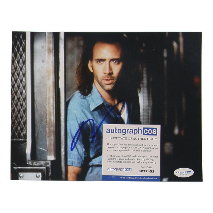 Photo measures 8" x 10" in size. Hand-signed by Nicolas Cage.