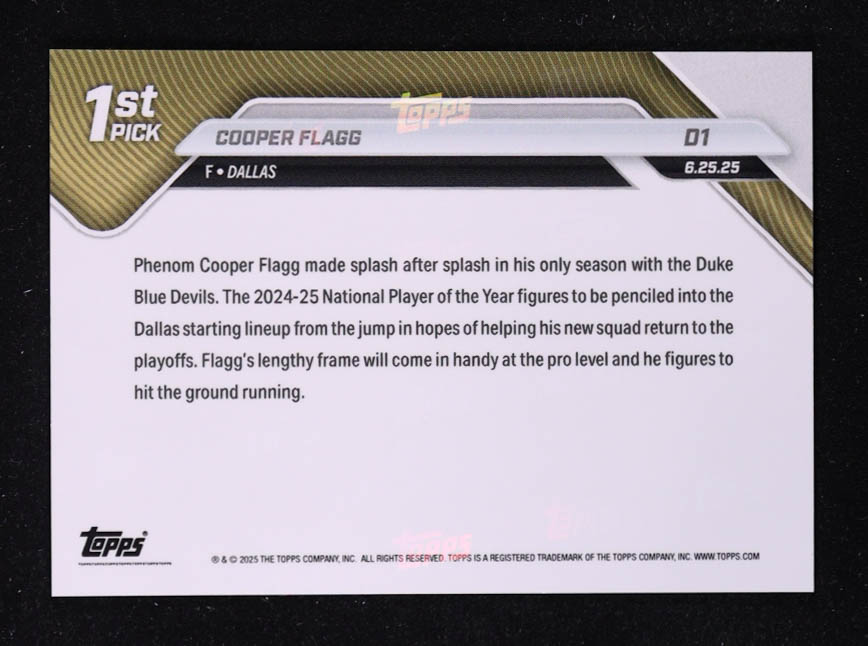 Cooper Flagg 2025-26 Topps Now #D1 RC