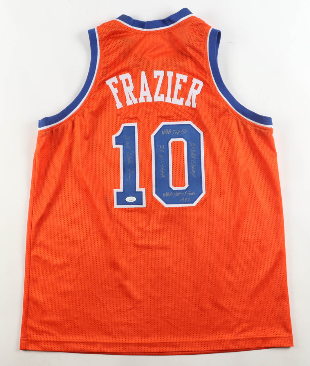 Walt "Clyde" Frazier Signed Jersey Inscribed "NBA Top 50", "7x All-Star", "2x NBA Champ", & "NBA Hall of Fame 1987" (JSA)
