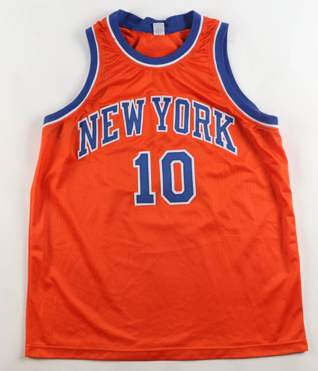 Custom jersey with everything sewn on, size XL. Hand-signed and inscribed by Walt "Clyde" Frazier (HOF).