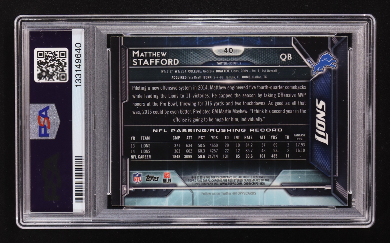 Matthew Stafford 2015 Topps Chrome Xfractor #40 (PSA 9)