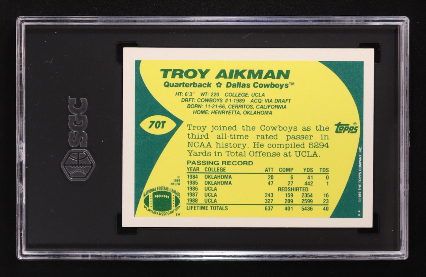 Troy Aikman 1989 Topps Traded #70T RC (SGC 10)