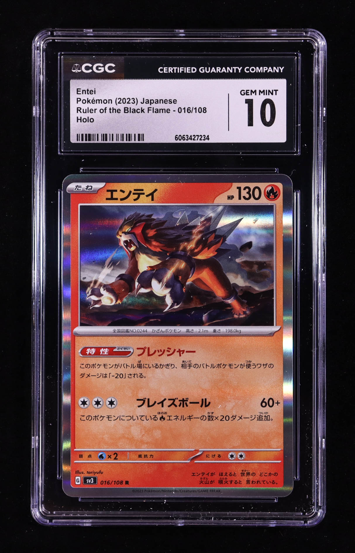 Entei 2023 Pokemon Card Game Scarlet & Violet Ruler of the Black Flame Japanese #016 HOLO (CGC 10)