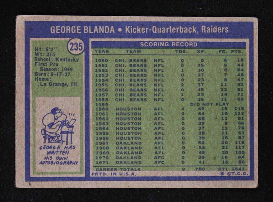 George Blanda 1972 Topps #235