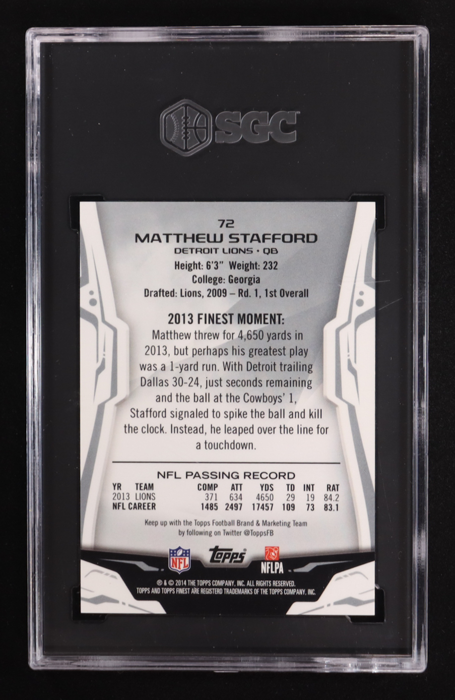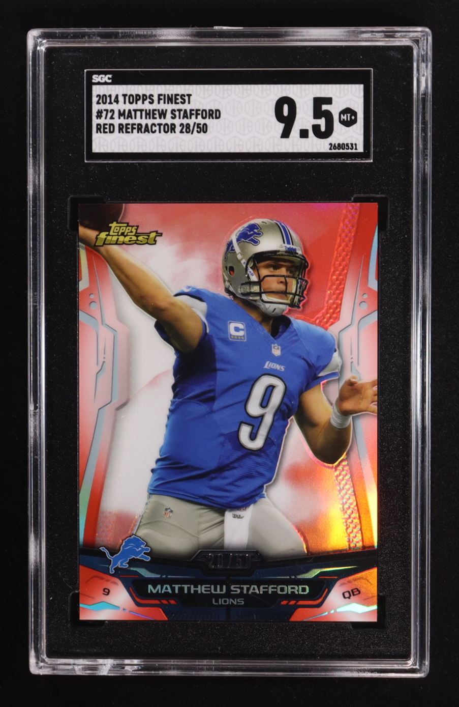 Matthew Stafford 2014 Topps Finest Red Refractor #72 #28/50 (SGC 9.5)