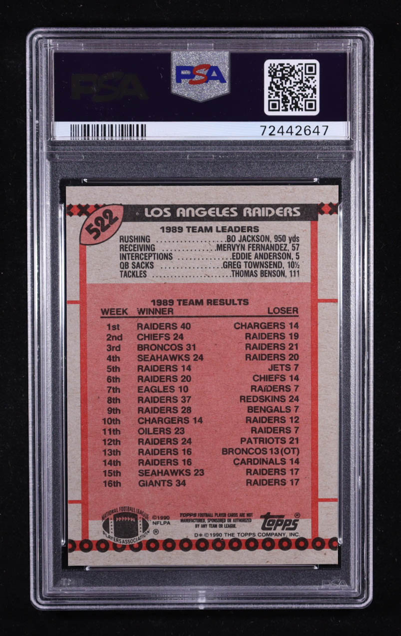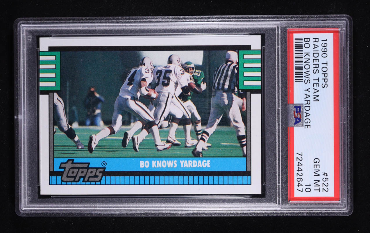 Bo (Jackson) Knows Yardage 1990 Topps #522A Raiders Team Leaders (PSA 10)