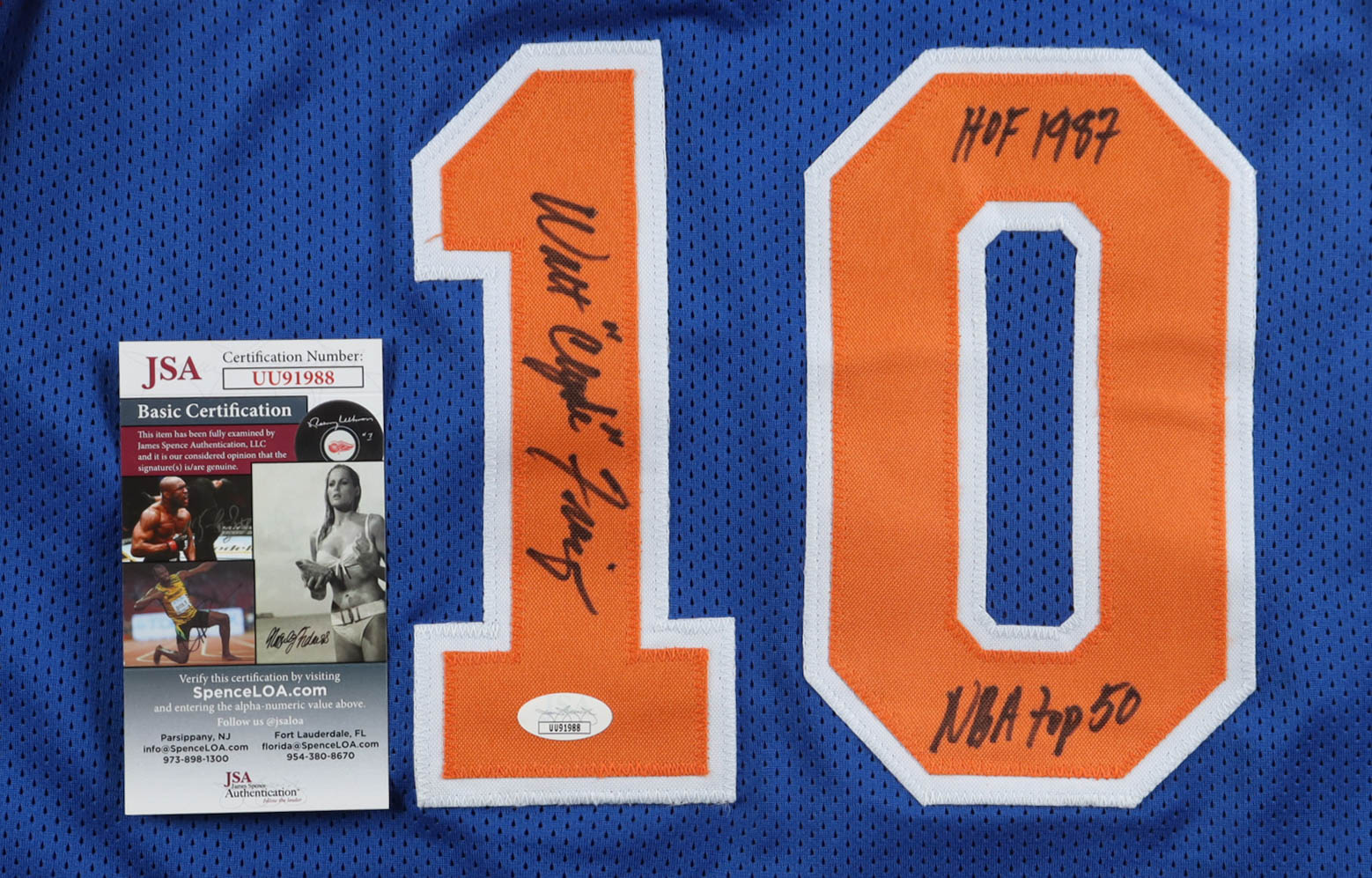 Walt "Clyde" Frazier Signed Jersey Inscribed "HOF 1987" & "NBA Top 50" (JSA)