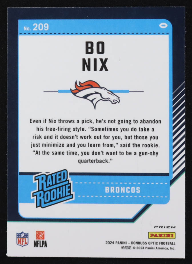 Bo Nix 2024 Donruss Optic Green Velocity #209 RR RC