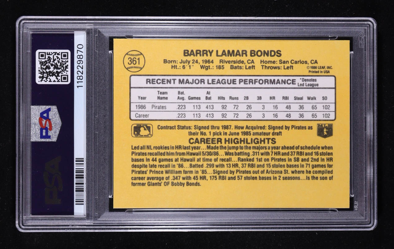 Barry Bonds 1987 Donruss #361 RC (PSA 9)