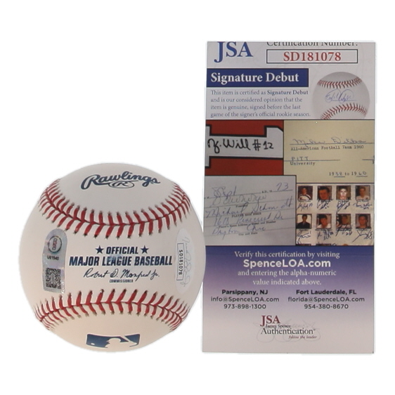 The autograph(s) includes an official James Spence Authentication (JSA) "Signature Debut" hologram and COA. "Signature Debut" is the autographed memorabilia equivalent to a rookie card. The JSA definition of a "Signature Debut" is as follows: "Any item that is autographed and received by JSA prior to the last game of the signer's official rookie season.