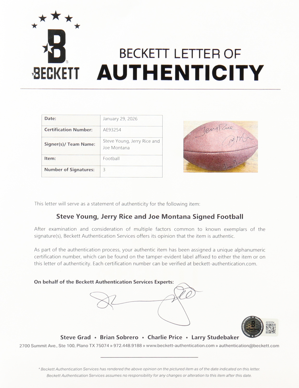 The autograph includes an official Beckett Authentication Services hologram and matching LOA for authenticity purposes.