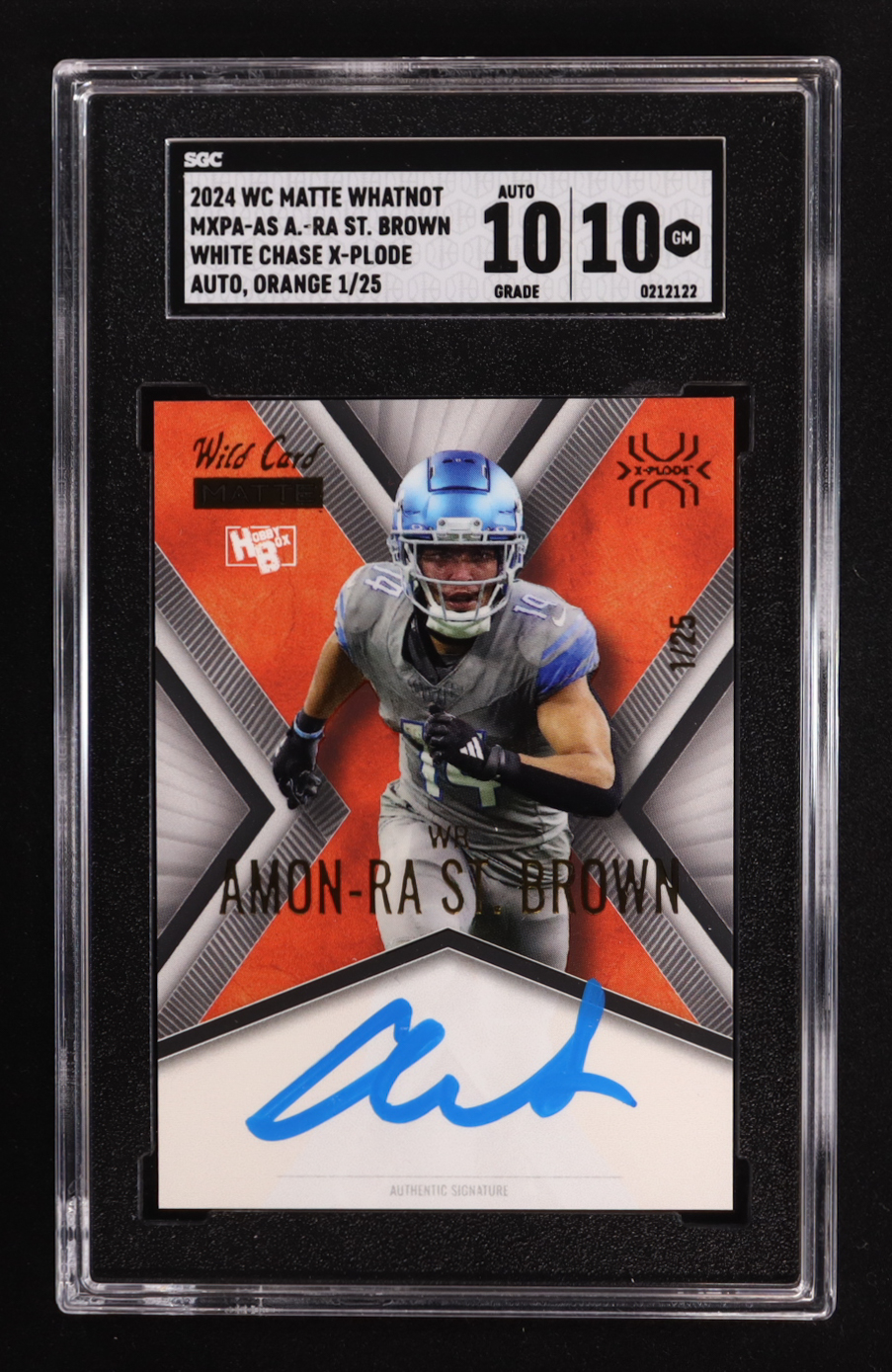 Amon-Ra St. Brown 2024 Wild Card Matte WhatNot White Chase X-Plode Orange Auto #MXPA-AS #1/25 (SGC 10 | Autograph Graded SGC 10)