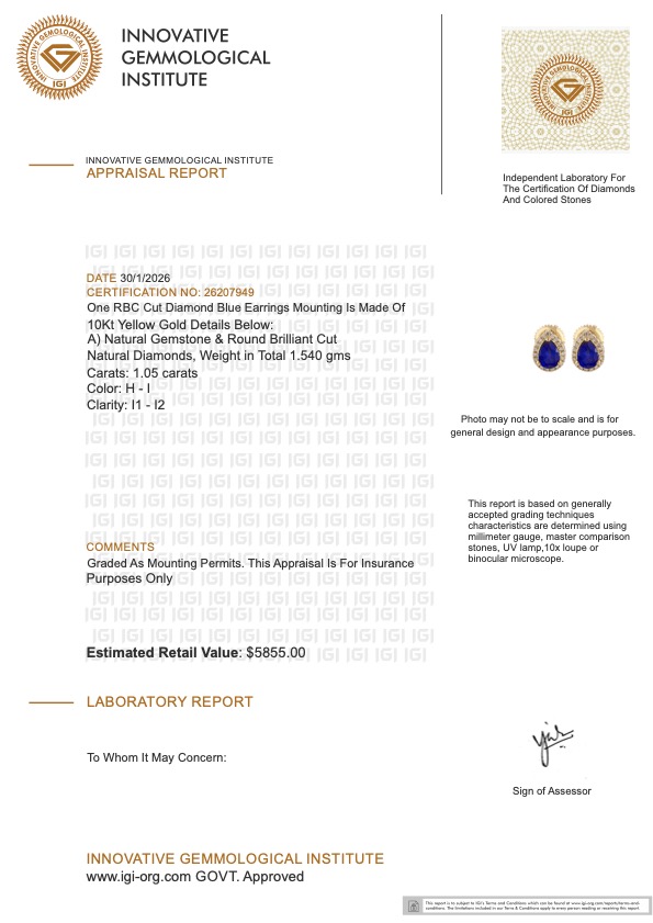 This piece includes paperwork from the Innovative Gemological Institute (IGI).