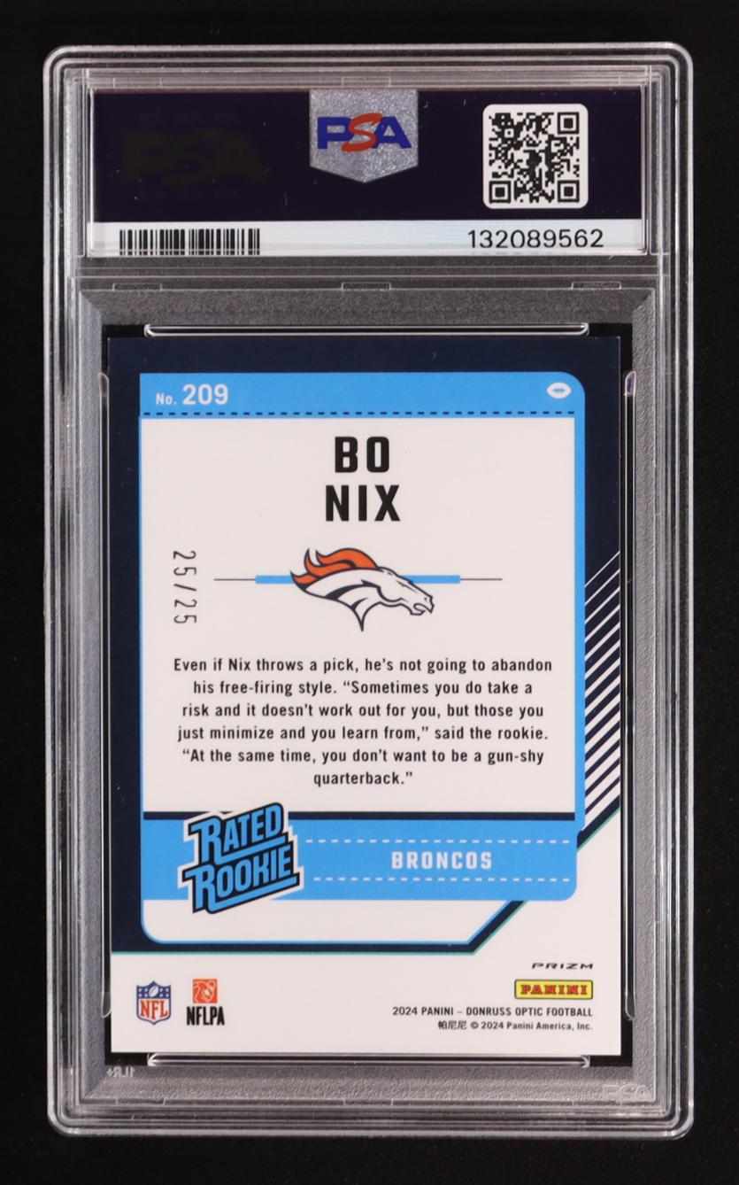 Bo Nix 2024 Panini Donruss Optic Black Pandora RR #209 RC #25/25 (PSA 9)