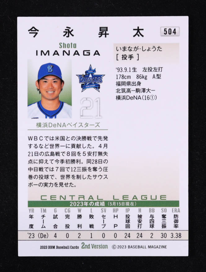 Shota Imanaga 2023 BBM Japan Silver Foil Facsimile #504 RC