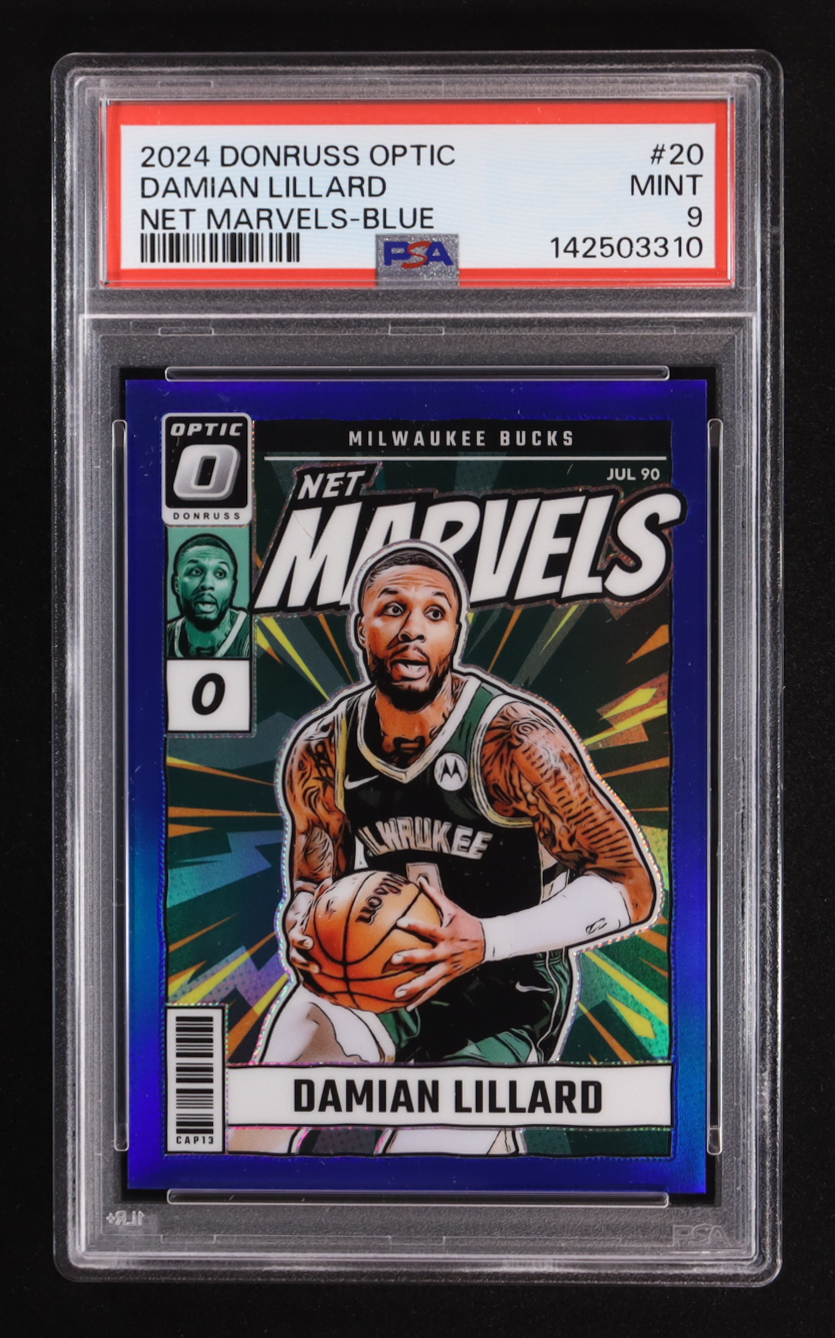 Damian Lillard 2024-25 Panini Donruss Optic Net Marvels-Blue #20 #14/49 (PSA 9)