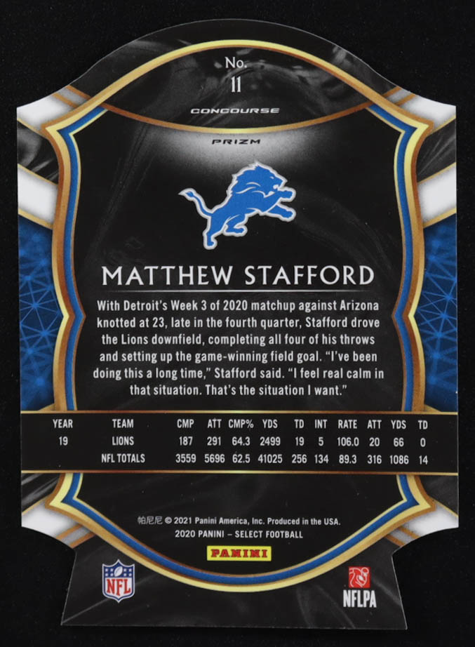 Matthew Stafford 2020 Select Prizm Zebra Die Cut #11