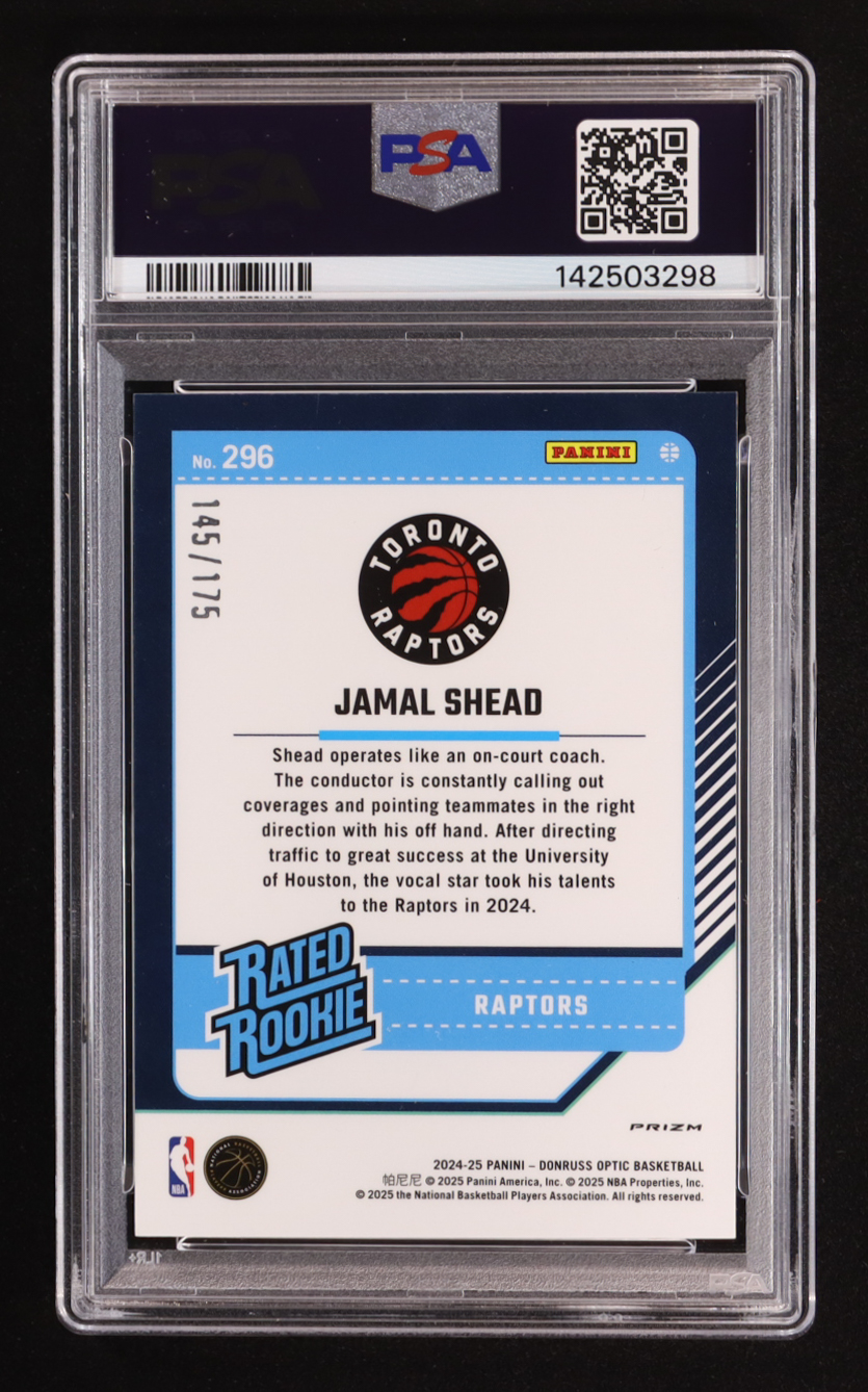 Jamal Shead 2024-25 Panini Donruss Optic Blue Hyper RR #296 RC #145/175 (PSA 9)
