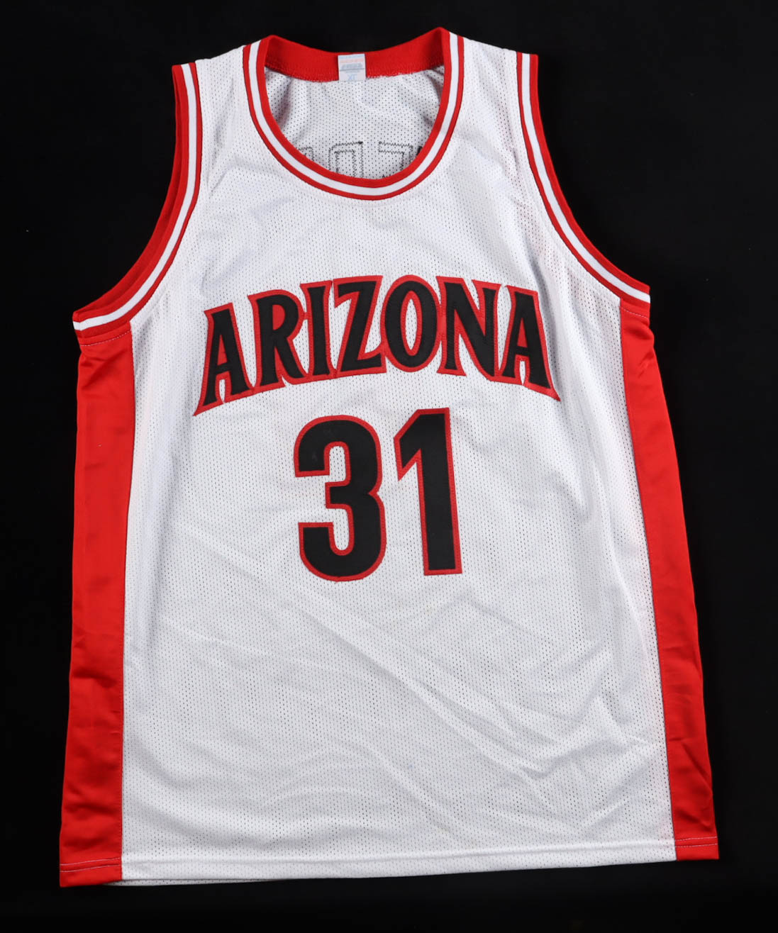 Custom jersey with everything sewn on, size XL. Hand-signed by Jason Terry (Arizona Wildcats). Please note, the jersey is lightly stained throughout.